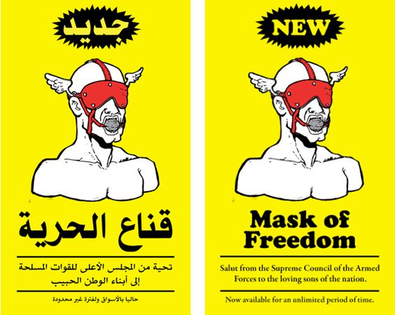 Året etter fulgte "No time for art", om politiet og militærets vold mot opposisjonelle – fra Mubarak-regimets siste dager til Mursis første. Billetten til denne forestillingen besto av klistremerket "Masks of freedom"(bilde under), av den etterhvert så kjente kunstneren Ganzeers. Ganzeer er et pseudonym som betyr kjetting eller kjede, nærmere bestemt sykkelkjede, og som han selv har uttalt, er kunstnere en del av den mekanismen som driver ting fremover. "Vi er ikke den drivende kraften, det er ikke vi som trår pedalene, men vi kan knytte sammen ideer, og ved å gjøre det får vi ting til å bevege seg."